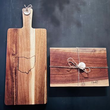 We are a veteran owned, family-operated, Ohio-based woodworking business specializing in crafting high-quality home decor and gifts. Our passion for woodworking began as a hobby and quickly turned into a business. We offer custom creations for your home or business. We can customize your one-of-a-kind creations with logos and text. We specialize in Charcuterie Boards, Coasters, wood plaques, and gifts.